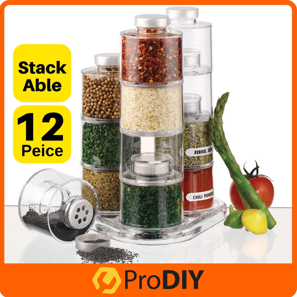12Pcs Spice Jar Rack Condiment Pots Storage Seasoning 12 Self-Stacking Bottles Dispenser Set ...