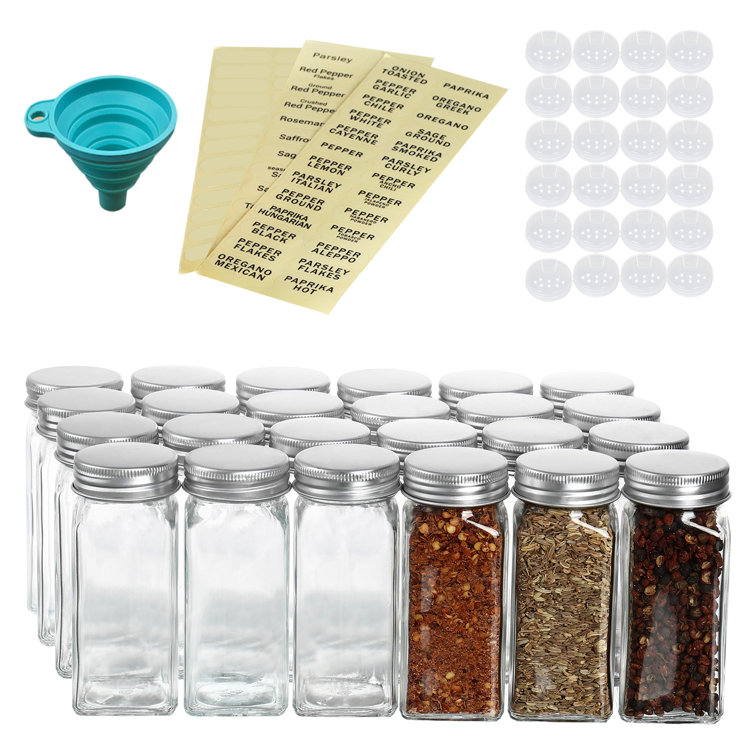 30pcs 4oz Glass Spice Jars with Labels, Empty Square Spice Bottles Seasoning Container with Shaker Lids, Funnel,Brush, Small Glass Bottles Spice ...