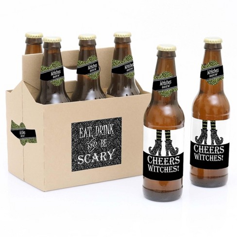 Big Dot of Happiness Spooktacular - Eat, Drink & Be Scary - Witch Brew Halloween Party Decorations - 6 Beer Bottle Label Stickers & 1 Carrier